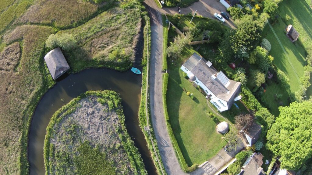 The two original double room cottages date to some time in the 17th Century, and were for Marshmen working on the local estate. At How Hill you can see a preserved cottage (Toad Hole Cottage). Lean to’s were added at the rear and you can still see the old bread oven at the back of the main stairs. Just after WW2 the main extension was added that joined the cottages and added the lounge, main bedroom and bathroom. Around this time our boathouse was built.